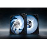 Fiche technique Le ventilateur EK-Quantum Phase 120 – Noir est un ventilateur de radiateur haute performance de 120 mm conçu pour les systèmes de refroidissement liquide où l'efficacité du flux d'air, la pression statique et le confort acoustique priment sur l'esthétique. Grâce à des simulations CFD poussées, chaque aspect de la géométrie des pales et du moyeu a été optimisé pour atteindre l'équilibre idéal entre pression statique, efficacité du flux d'air et performances acoustiques. Le résultat : un ventilateur spécialement conçu pour les radiateurs de refroidissement liquide, où la résistance à l'air est élevée et où le rapport performance/décibel est crucial. Performances et acoustique – Résultats mesurés Lors de tests normalisés en termes de bruit*, le ventilateur EK-Quantum Phase 120 présente des avantages significatifs par rapport au ventilateur FPT d'EK : À niveau sonore équivalent (1 000 tr/min pour le ventilateur FPT), le Phase tourne 5,5 % plus vite (1 055 tr/min) tout en réduisant la différence de température du liquide de refroidissement (?T = Teau – Tair) de 14,8 %, soit un gain de 3,6 °C. À des niveaux sonores plus élevés (1 500 tr/min pour le ventilateur FPT), le Phase tourne à 1 600 tr/min (+6,6 %) et réduit la différence de température du liquide de refroidissement (?T) de 10,2 %, soit une réduction de 1,4 °C. Ces gains sont obtenus grâce à une géométrie optimisée pour une pression statique plus élevée à un régime moteur plus bas, permettant à Phase de maintenir d'excellentes performances de refroidissement sur une large plage de fonctionnement. * Tous les tests ont été réalisés sur un radiateur EK-Quantum Surface P. Des performances similaires sont attendues avec d'autres modèles de radiateurs. Fiabilité garantie Le ventilateur utilise un roulement hydrodynamique (FDB) d'une durée de vie moyenne avant panne (MTBF) de 70 000 heures, assurant une stabilité à long terme, un faible niveau sonore et des performances constantes. La commande PWM de 550 à 2 200 tr/min permet un réglage précis pour un fonctionnement silencieux ou un refroidissement maximal, selon les besoins du système. Esthétique haut de gamme et éclairage D-RGB Au-delà de ses performances, le EK-Quantum Phase 120 redéfinit les standards du raffinement et de l'esthétique. Des amortisseurs d'angle en caoutchouc remplaçables réduisent les vibrations tout en permettant une personnalisation visuelle subtile. Résultat : un fonctionnement plus silencieux, des performances accrues et une esthétique raffinée, conçus sans compromis. EK-OmniLink permet de connecter plusieurs ventilateurs en série, réduisant ainsi l'encombrement des câbles et simplifiant considérablement leur gestion. La conception EK-OmniLink résout les problèmes d'encombrement des câbles en unifiant la connexion de plusieurs ventilateurs sur un seul connecteur PWM et D-RGB, tout en conservant une flexibilité totale si l'utilisateur souhaite retirer un ventilateur de la chaîne. Spécifications mécaniques et électriques : Plage de vitesse de rotation : 550 – 2 200 tr/min Débit d’air maximal : 72,95 CFM = 123,94 m³/h